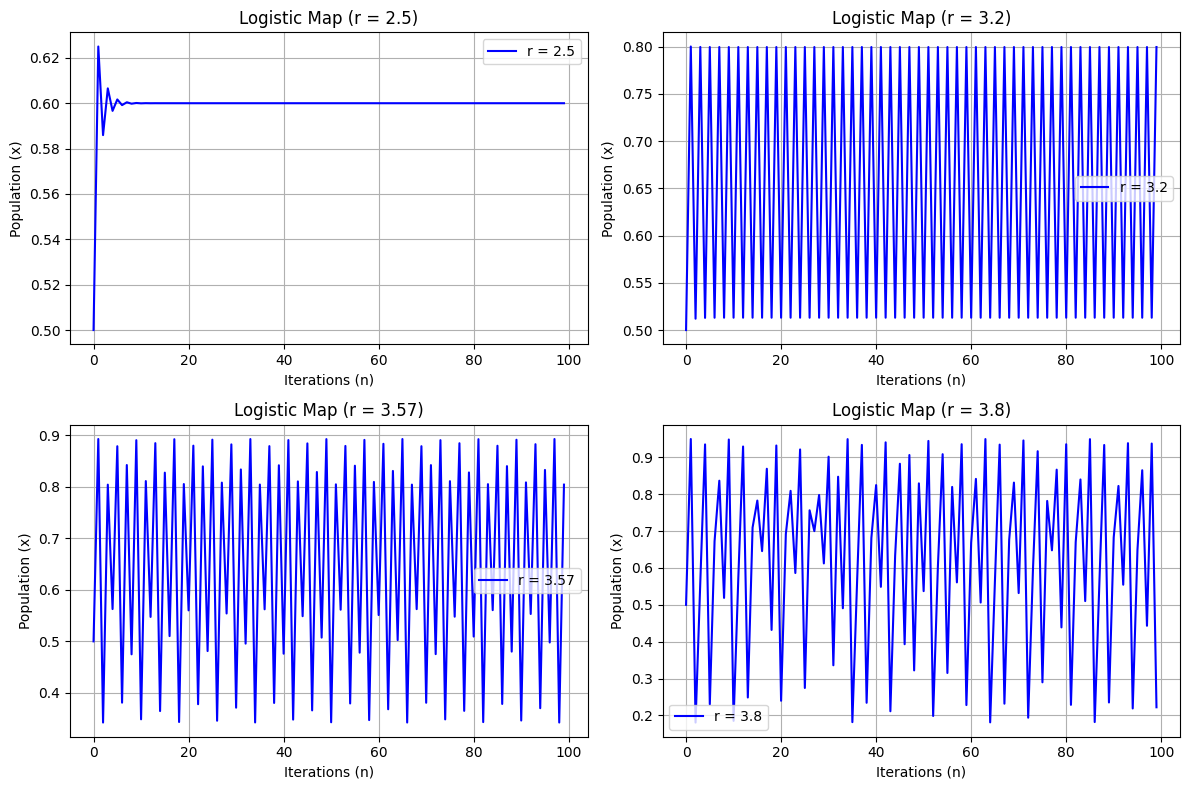 How can a formula so simple hide a universe of complexity? This question has often drawn me to the logistic map, a humble recursive equation that captures the full drama of chaos theory. Imagine a rule, almost childlike in its structure, that can predict whether a population of rabbits will settle peacefully, oscillate rhythmically, or spiral into utter unpredictability. What begins as a modest attempt to describe population growth soon transforms into something far richer—a window into the unpredictability of nature, the hidden symmetries of mathematics, and the intricate geometries of fractals.