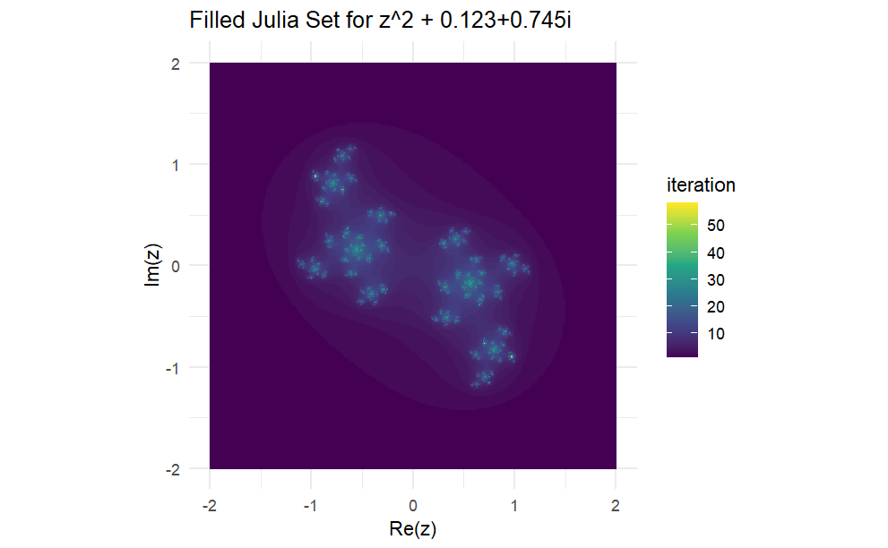 The Julia set of a complex function \(f(z)\) is the closure of the set of repelling periodic points of \(f.\) Formally, it is defined as: