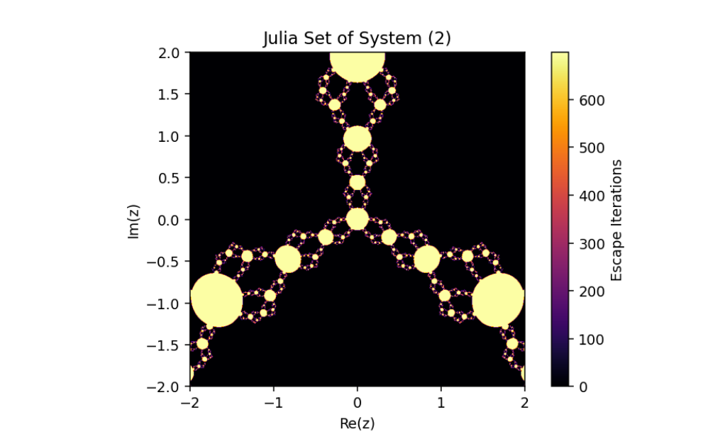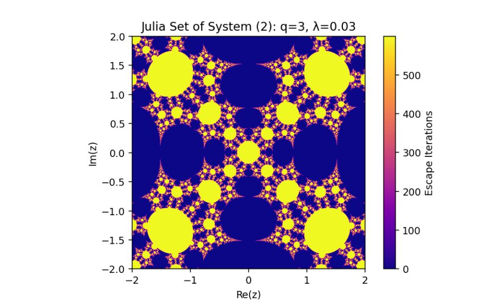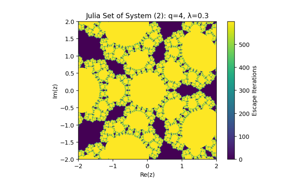 Coupling: The term involving wn and μ/wpn introduces a synchronized perturbation to the primary Julia set, ensuring dynamic interactions between zn and wn.