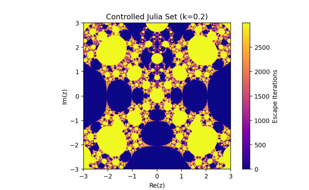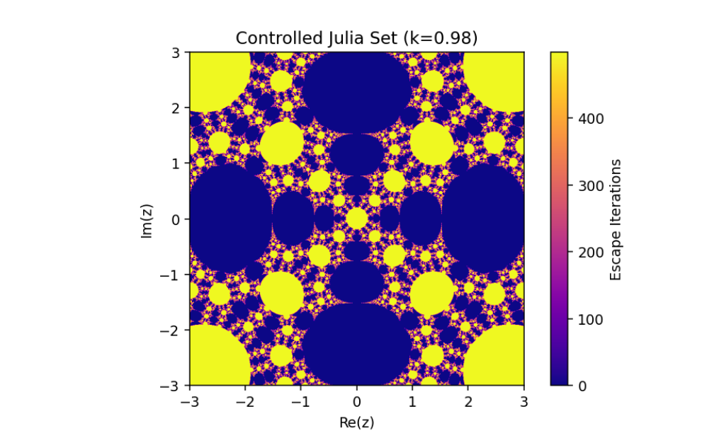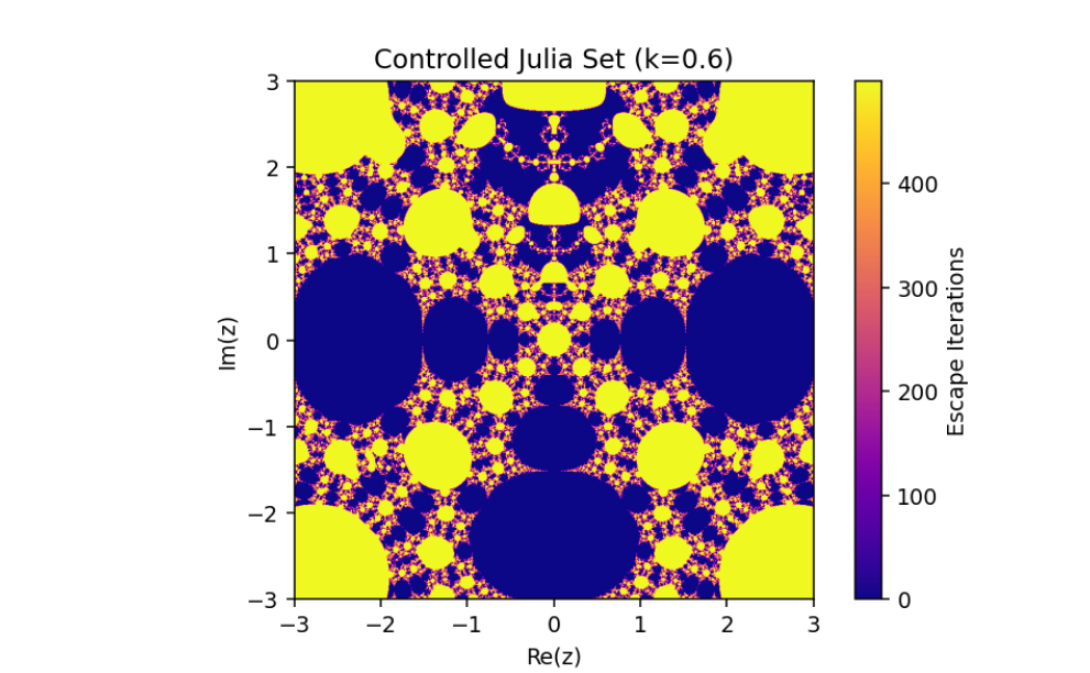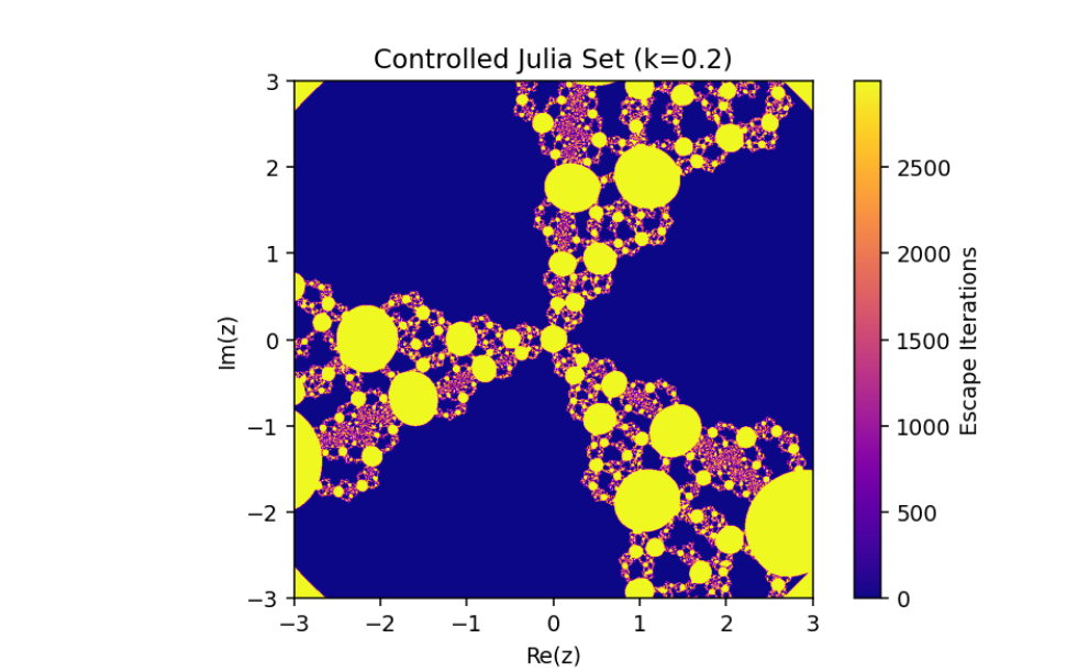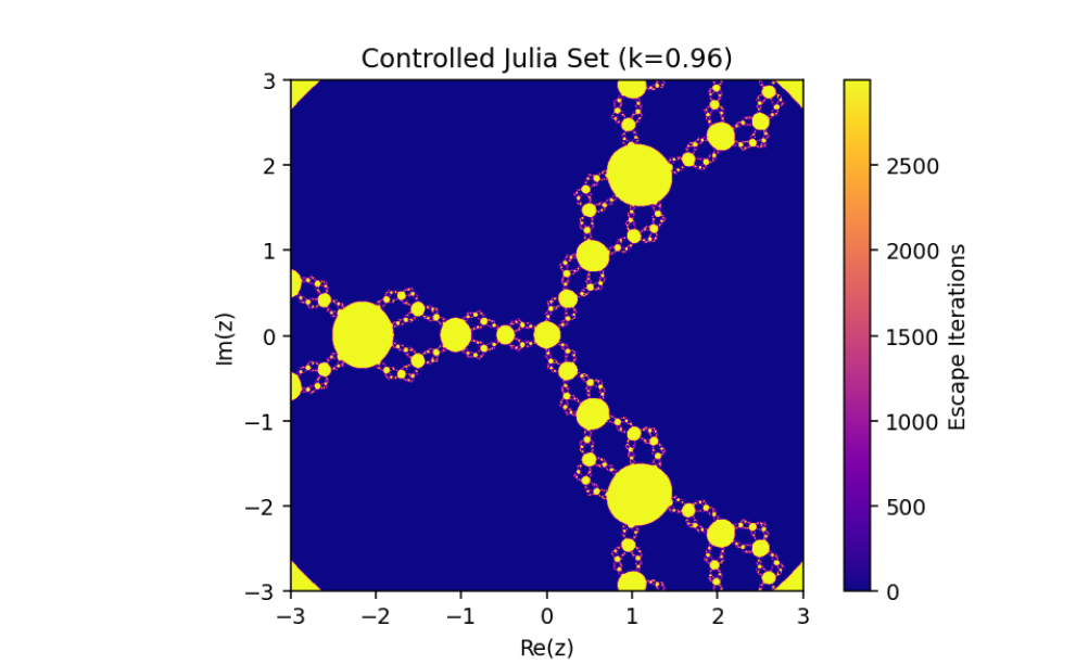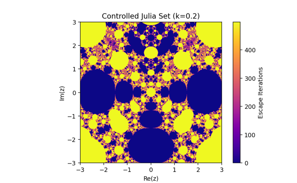 This mechanism alters the behavior of the system, enabling adjustments to its fractal properties based on a coupling or control parameter k. Let’s break down this system and analyze its mathematical structure: