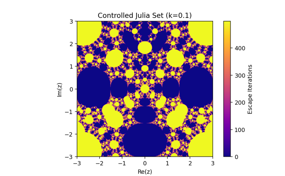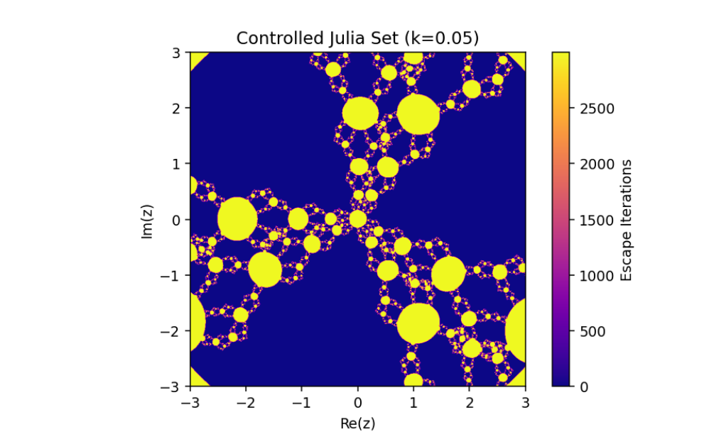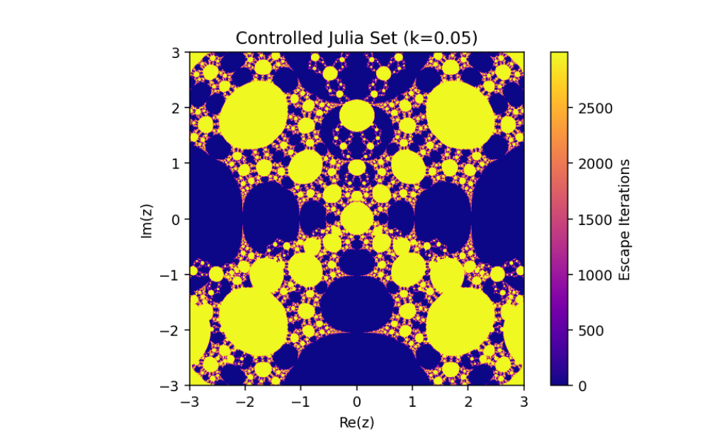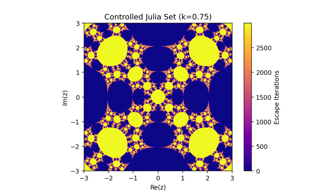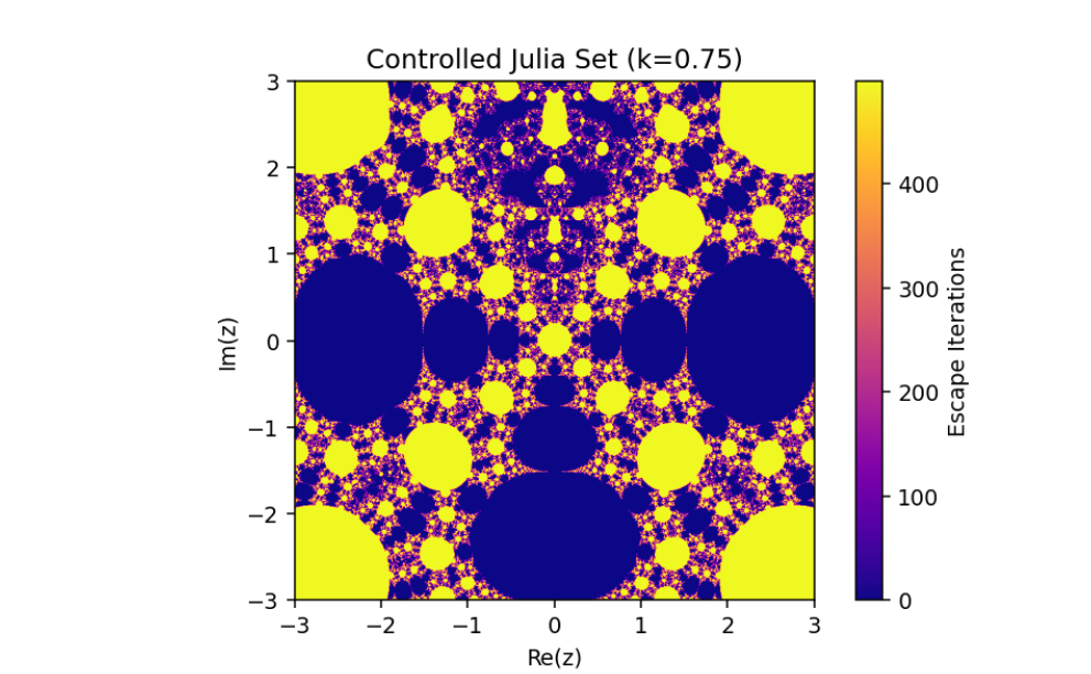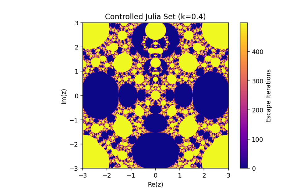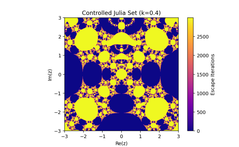 This mechanism alters the behavior of the system, enabling adjustments to its fractal properties based on a coupling or control parameter k. Let’s break down this system and analyze its mathematical structure:
